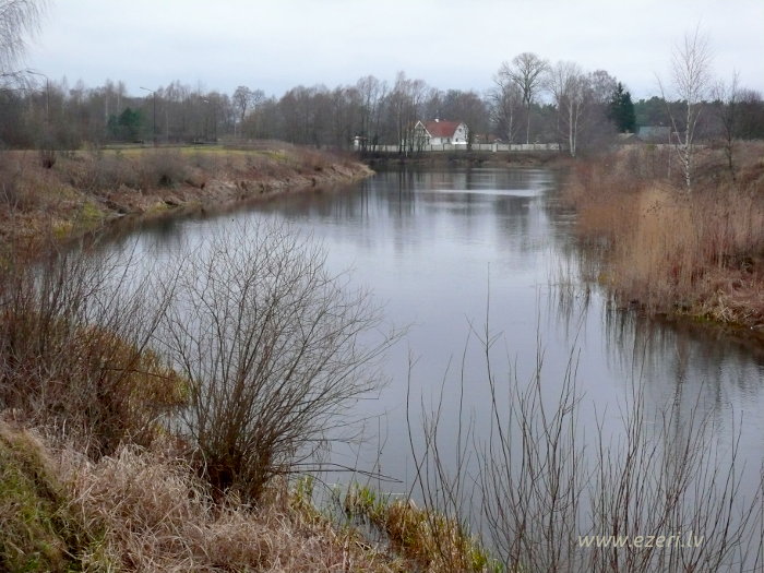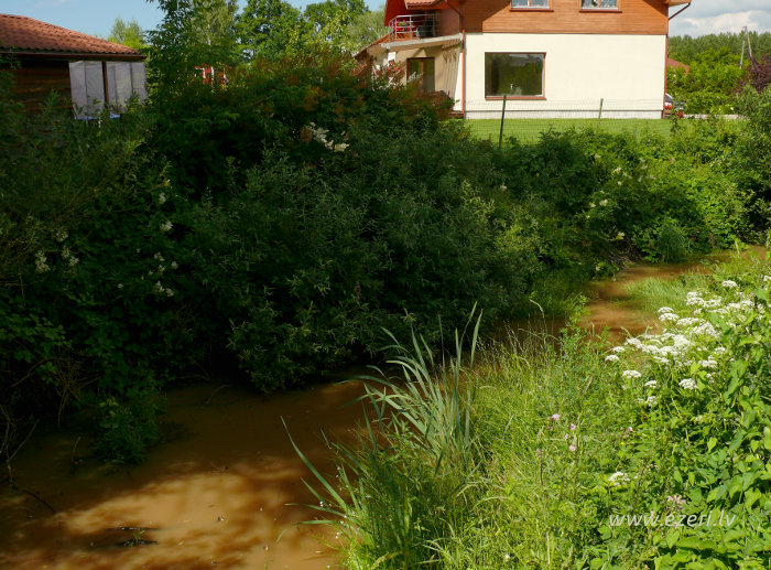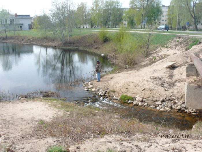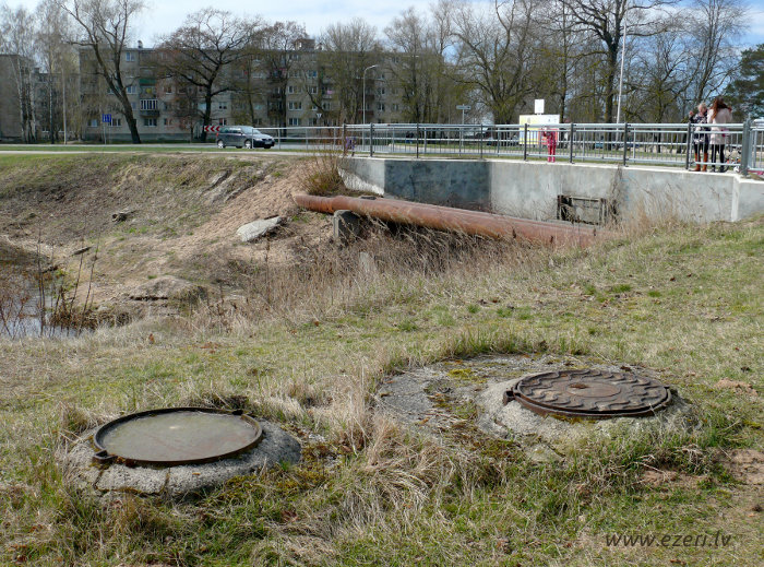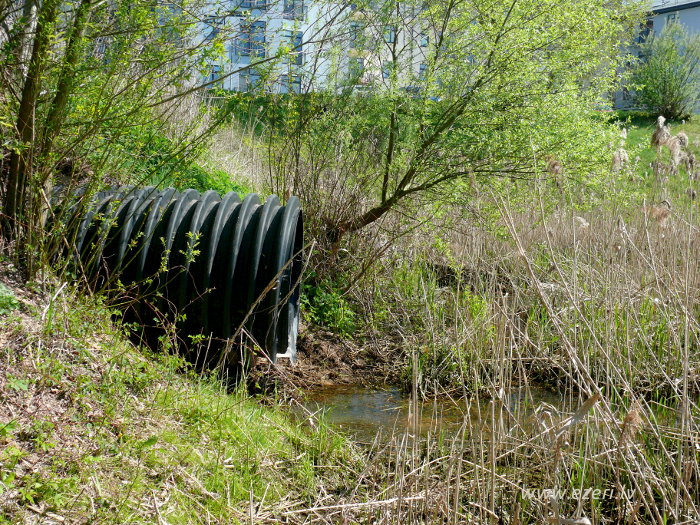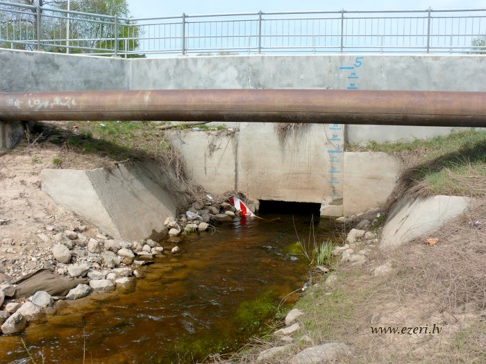 photograph Vējupes 2.daļa. Augšgals pie Podniekiem. Krastā redzama caurule, iespējams, lietusūdeņu novadīšanai. |