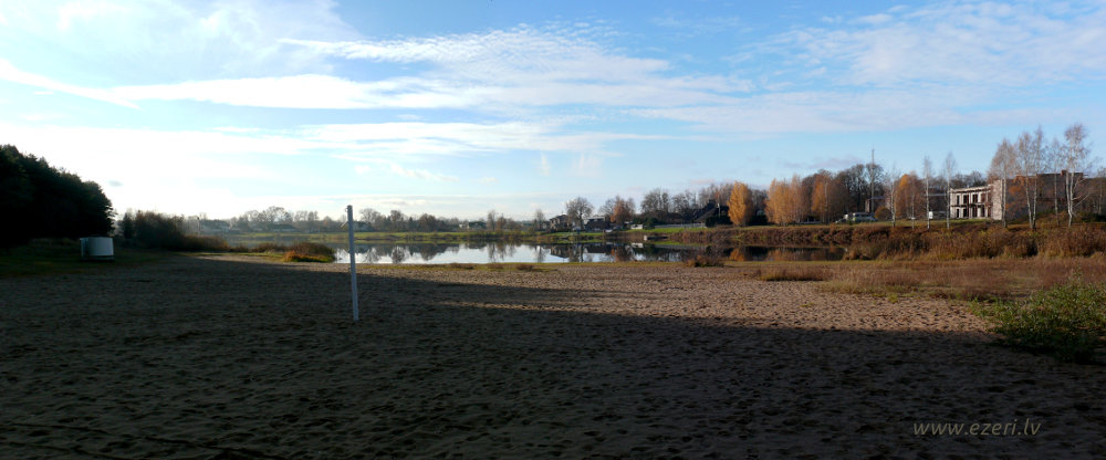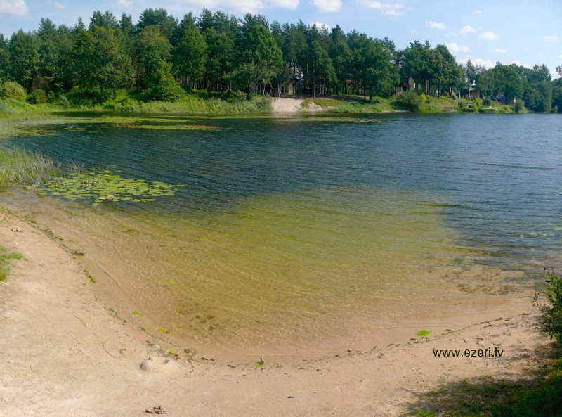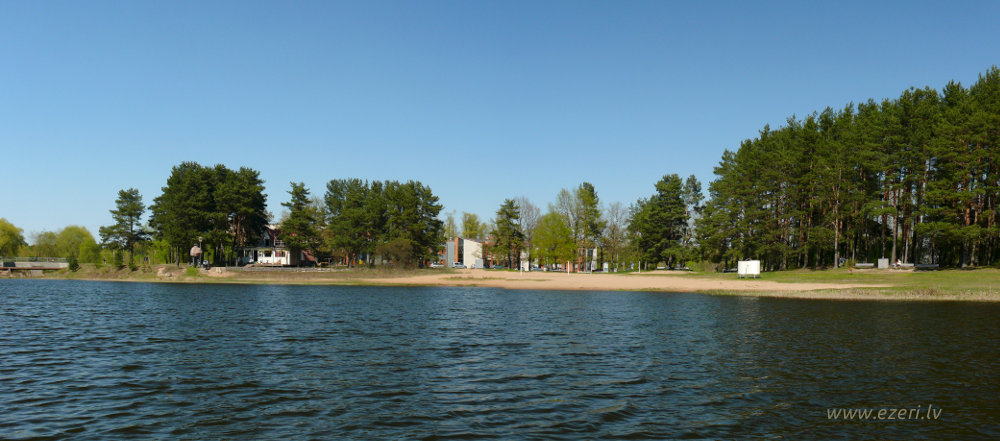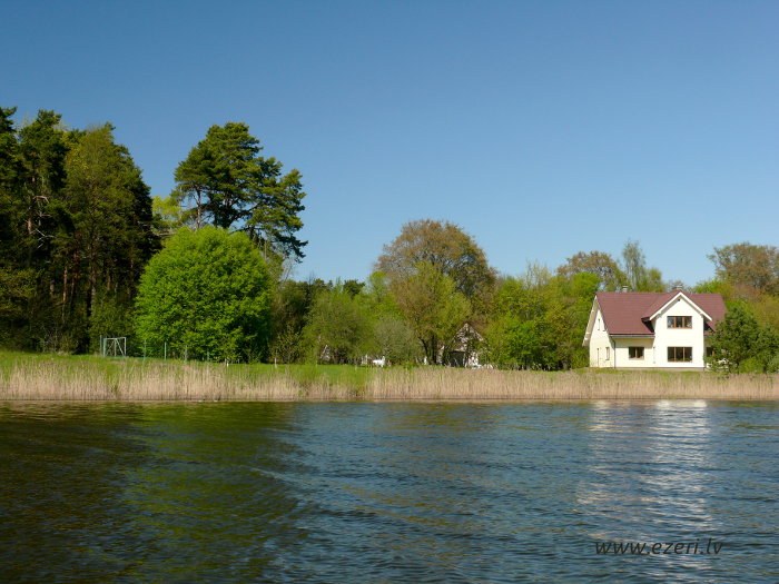 photograph Trešās daļas krasts. Starp apbūvi un ezeru ir iela. Krasts brīvi pieejams. |
