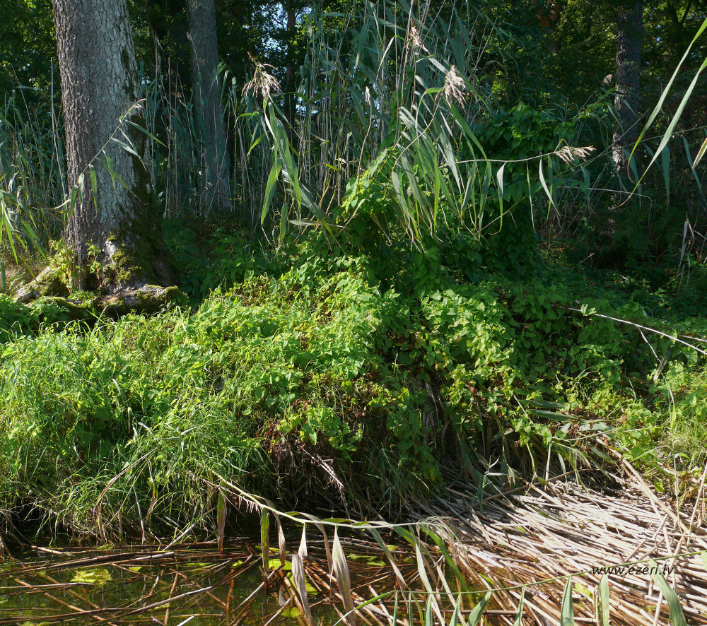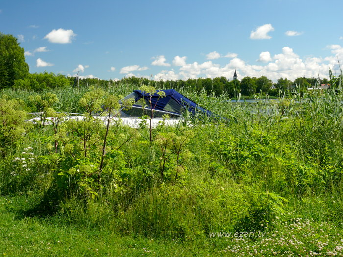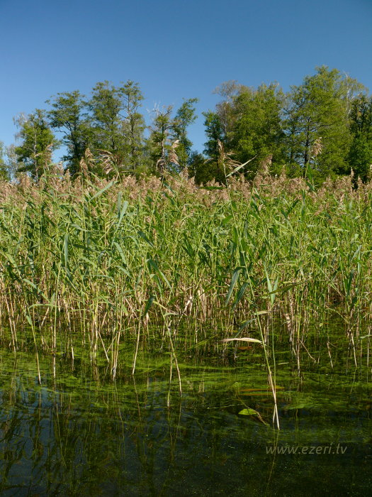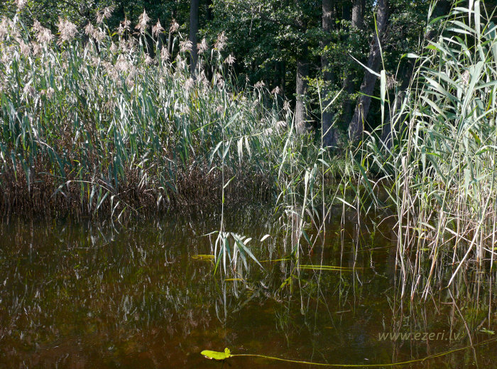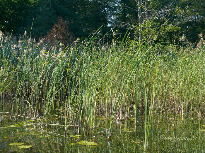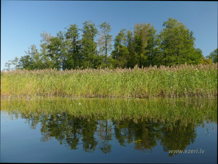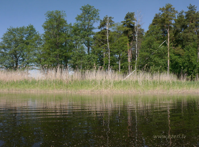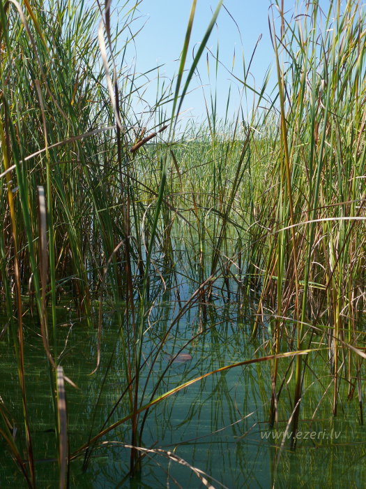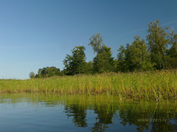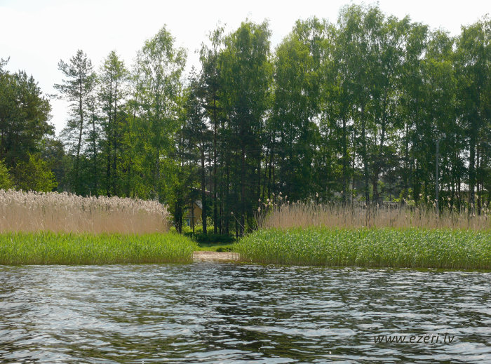 photograph Meldru sala ir sēklis, apaudzis ar niedrēm un vilkvālītēm. |